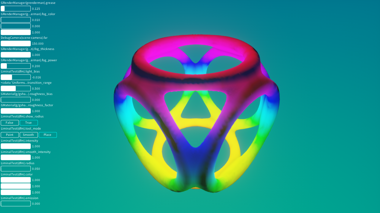 Instead, I got sidetracked into tetrahedra-based dual contouring and wrote a fast GPU-based implementation that used a grid instead of an octree, and experimented with alternate honeycombs for meshing. Things were great for a while. Descend your gaze upon this smooth animation of an implicit function: